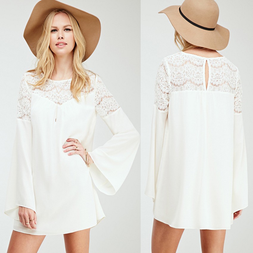 bohemian white bell sleeves lace dress dreamers lovers