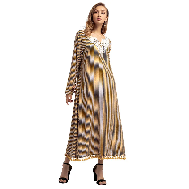 long sleeve dress striped tropical beach vintage maxi